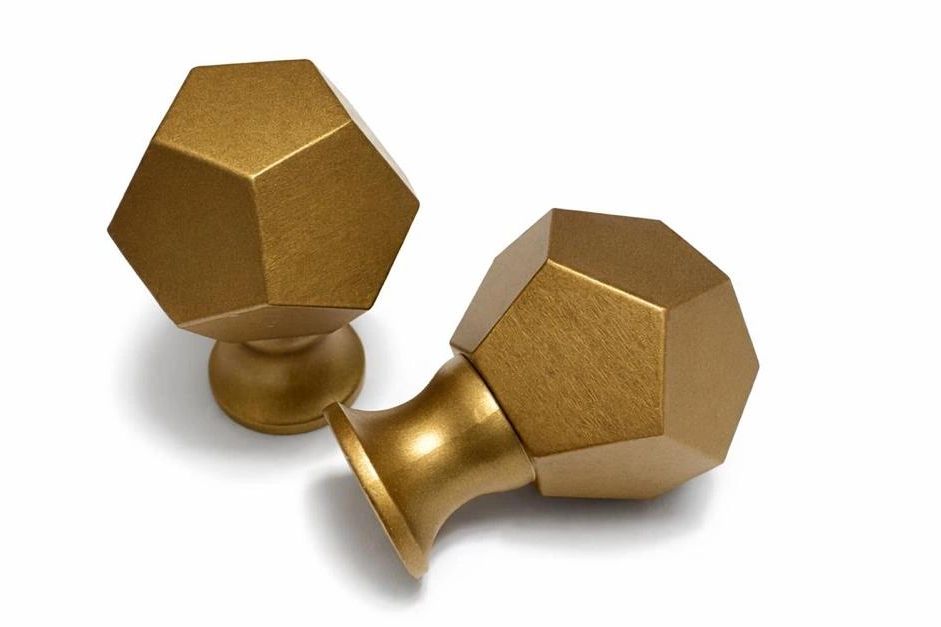 High-quality geometric cabinet knob made of solid brass with a gold finish. Designed for durability and a modern aesthetic for cabinets and drawers.