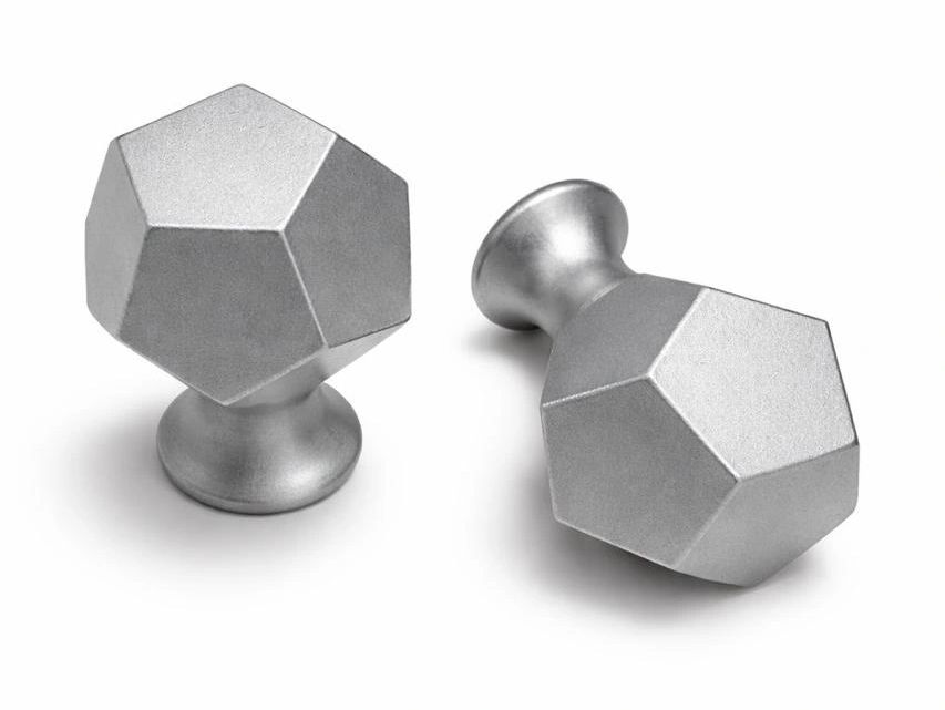 High-quality geometric cabinet knob made of solid brass with a silver finish. Designed for durability and a modern aesthetic for cabinets and drawers.