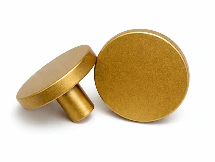High-quality round metal cabinet knob with a sleek gold finish. Ideal for kitchen cabinets, drawers, wardrobes, and modern furniture designs. Durable construction with a smooth surface for comfortable use.